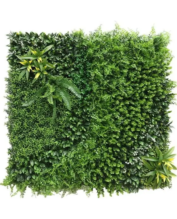 Συνθετικό διακοσμητικό πάνελ με πυκνή φυλλωσιά, σε πλακίδιο 1m x 1m. Έχει τρισδιάστατη όψη και δίνει μια αίσθηση ζωντάνιας και φυσικότητας στον χώρο σας. Διακοσμήστε τον εξωτερικό ή εσωτερικό χώρο σας με τα πάνελ φυλλωσιάς και δημιουργήστε έναν μοναδικό κάθετο κήπο.