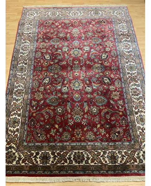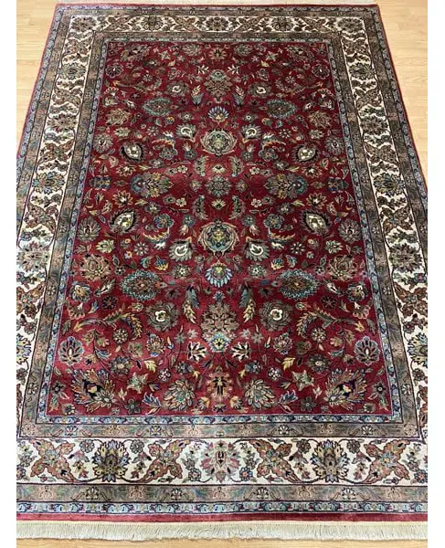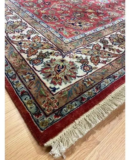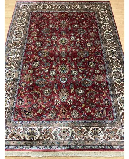 Από τις καλύτερες πυκνότητες της ινδικής ταπητουργίας. Μαλλινομέταξο διπλόκομπο GHOM αριστούργημα, ειδικής παραγγελίας σε κατασκευή και σχέδια. Ευκολοσυνδύαστα χρώματα, με ή χωρίς κέντρο, επαναλαμβανόμενα μοτίβα δείχνουν την συνέχεια στον χρόνο και στην ζωή που δεν σταματά. Χρώματα μπλέ βαθύ, πράσινο, κόκκινο, σάπιο μήλο, μπέζ, ώχρα, γαλάζιο, γκρί, καφέ.