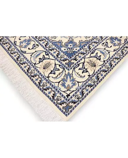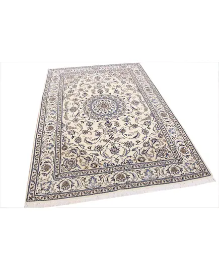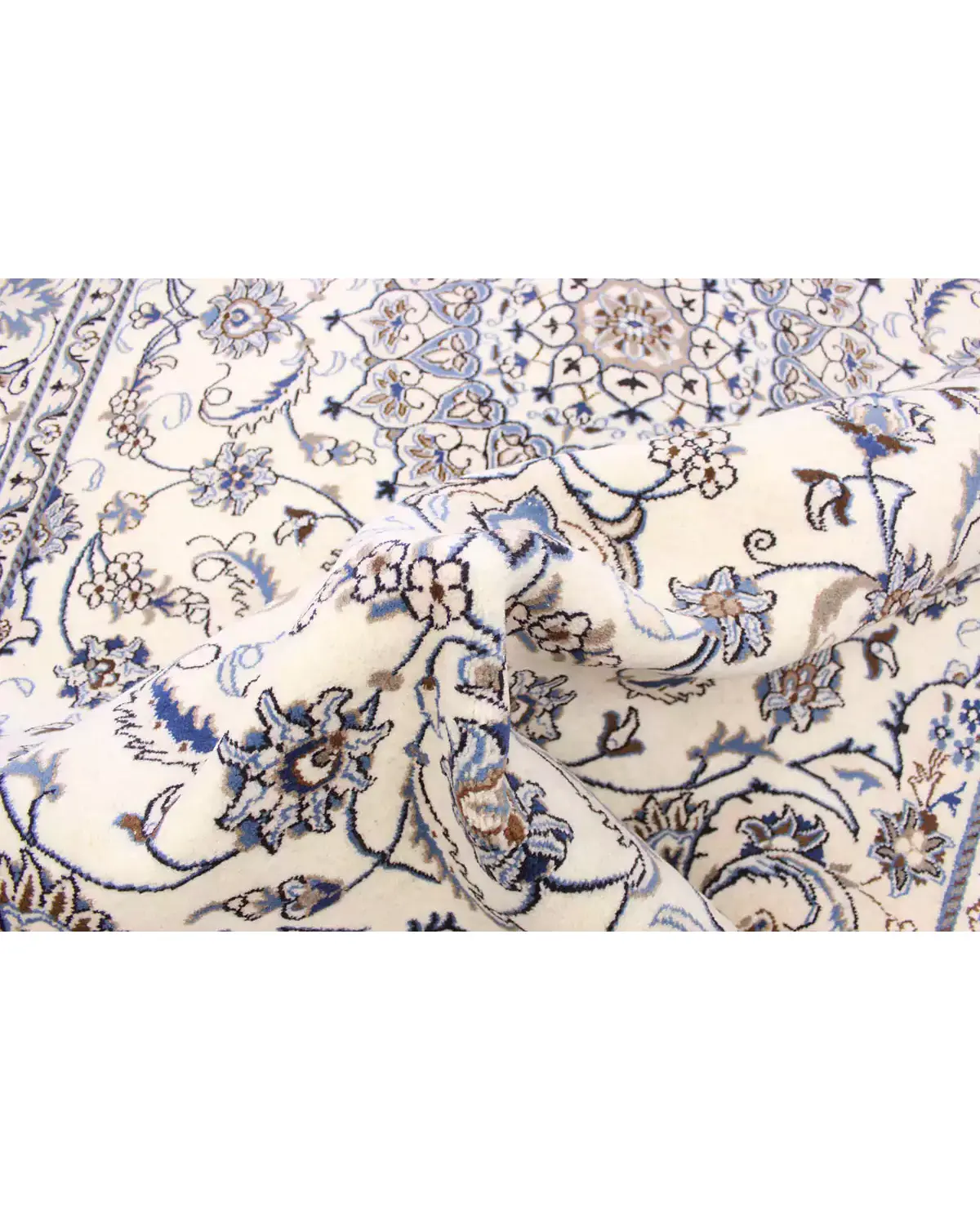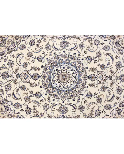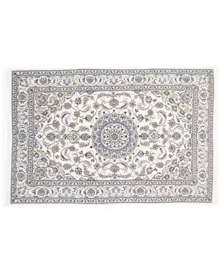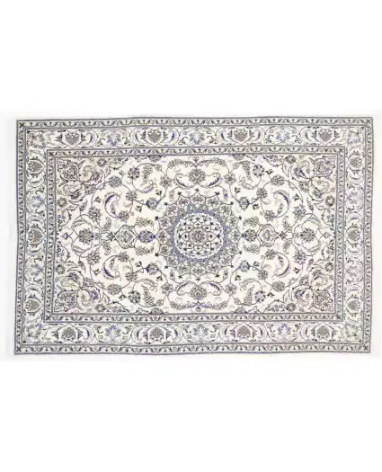 Χειροποίητο περσικό μαλλινομέταξο χαλί NAIN 9 LA. Από τα πιο γνωστά σχέδια της Περσίας υφαμένο στην ομώνυμη πόλη, ΝΑΙΝ. Τα περιγράμματα των σχεδίων του που αποτελούνται από μετάξι δίνουν μια διαφορετική υπόσταση στο χαλί με τη λάμψη τους. Χρησιμοποιούνται τα κλασσικά χρώματα αυτής της οικογένειας δηλαδή το μπλε, το μπεζ και το μπορντώ. Ποιότητα χαλιού αυστηρά ελεγμένη από τον εθνικό οργανισμό χαλιού Περσίας. Η ποιότητά του μοιάζει με 6LA και ESFAHAN από την πάνω του μεριά. Πυκνότητα, 400.000 κόμβους ανά τετρ. μέτρο.