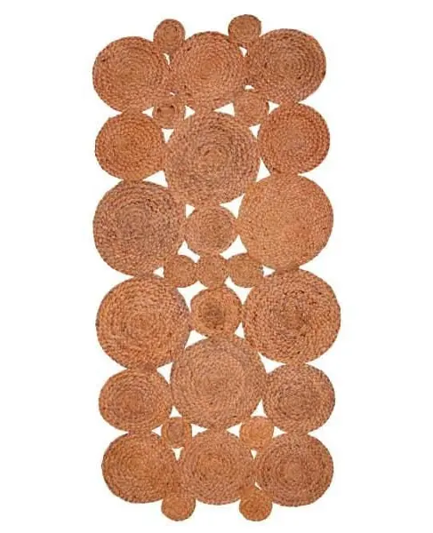 Χειροποίητη ψάθα γιούτας Ossola. Μαγνητίζει τα βλέμματα χάρη στο υλικό με το οποίο είναι κατασκευασμένη. Ιδιαίτερο πλεχτό σχέδιο με μικρούς και μεγάλους κύκλους. Οι γήινες αποχρώσεις της που διαθέτει, την καθιστούν πρωτότυπη και εντυπωσιακή για όλους τους χώρους του σπιτιού ή του γραφείου σας.