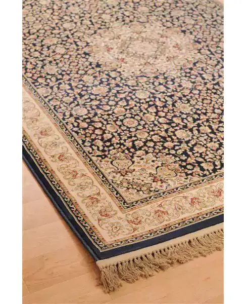 Μηχανοποίητο χαλί Orian. Για τους λάτρεις του κλασσικού σχέδια ένα προς ένα! Σε ζεστές αποχρώσεις του μπορντώ, του μπεζ και του μπλε.