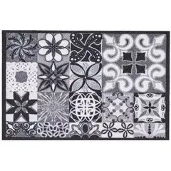 Ποδόμακτρο εξώπορτας Αντιολισθητικό Απορροφά το νερό Σταματάει την βρωμιά Πλένεται στο πλυντήριο στους 30 βαθμούς Σκουπίζεται εύκολα 100% πολυαμίδιο, vinyl backing