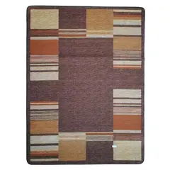 Χαλί μηχανοποίητο ελληνικής κατασκευής, με πλαστικό υπόστρωμα και σε ζεστούς καφέ χρωματισμούς.