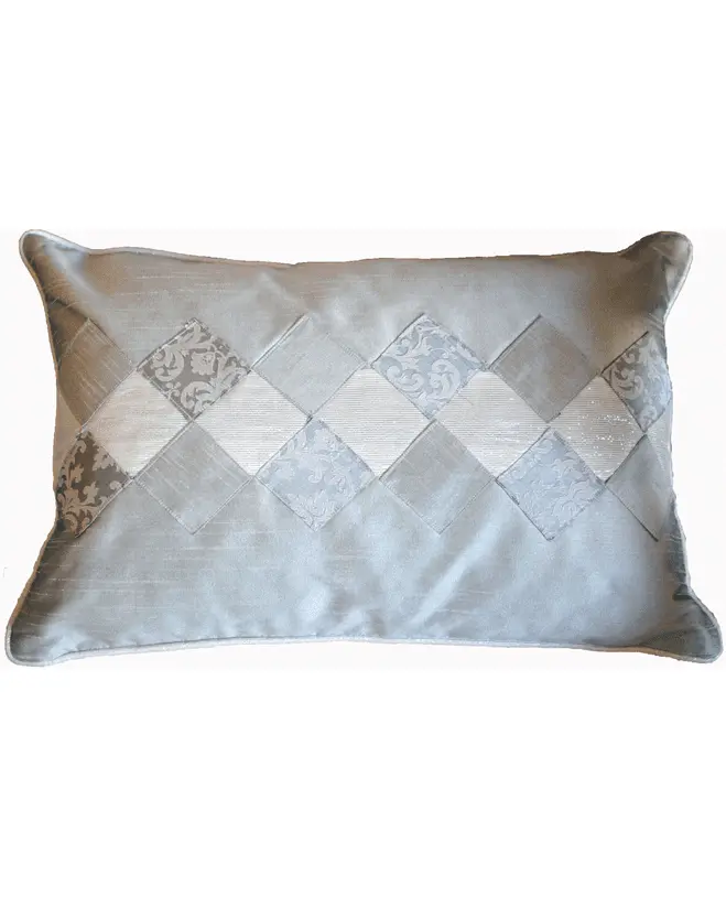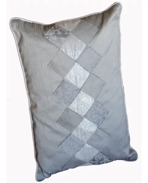 Μαξιλαροθήκη με πολυτελή ταφτά σε γκρί-ασημί χρώμα.