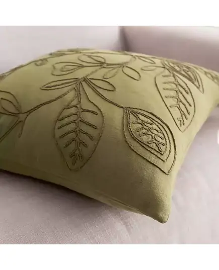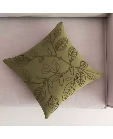 Διακοσμητική μαξιλαροθήκη μονόχρωμη με ανάγλυφο κεντητό σχέδιο σε χρώμα πράσινο, από την εταιρία Gofis Home.