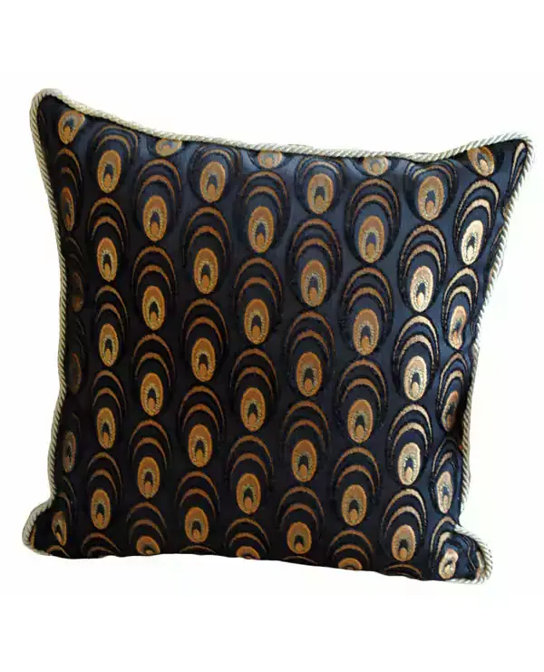 Μαξιλάρια με σχέδιο που μοίζει με φτερά παγωνιού σε μαύρο και χρυσό χρώμα. Η τιμή αφορά 2 τεμ. θηκών μαξιλαριών διακοσμητικών, μιας όψης. Η γέμιση είναι δωρεάν. Όλες οι θήκες κλείνουν με φερμουάρ.